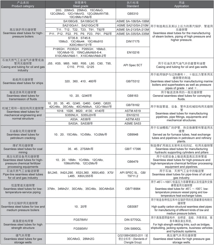 江蘇誠德鋼管股份有限公司產(chǎn)品目標(biāo)定位:產(chǎn)能最大,組距最大,質(zhì)量最好,成本最低。產(chǎn)品經(jīng)營方針:多品種、多鋼種、創(chuàng)品牌、短平快。產(chǎn)品覆蓋國內(nèi)所有行業(yè),取代部分進(jìn)口鋼種,囊括各國標(biāo)準(zhǔn)的一切不銹鋼,碳鋼的所有鋼種鋼級,產(chǎn)品品質(zhì)受到國內(nèi)外用戶的廣泛青睞。